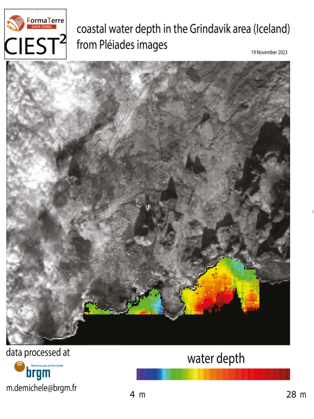 -M. de Michele, D. Raucoules, V. Pinel, J. M. C. Belart. Shallow bathymetry from pléiades data : the case study of the Grindavik volcanic crisis, 2024 IEEE International Geoscience and Remote Sensing Symposium, Institute of Electrical and Electronics Engineers, Jul. 2024, Athènes, Greece.
