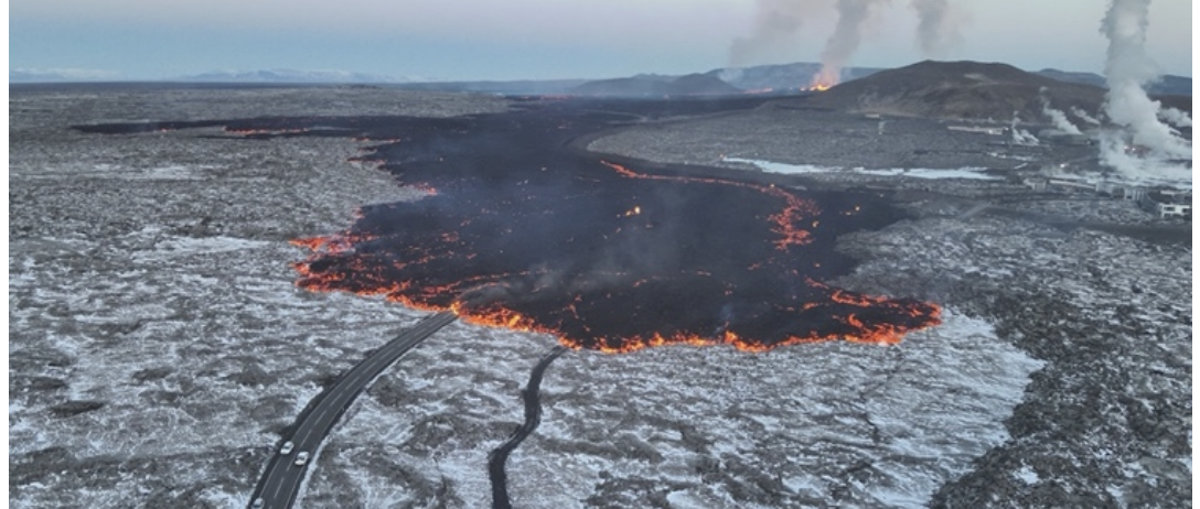 Figure 3 : Image prise par drone de l’éruption de novembre 2024 (débutée lors de la réunion MDIS), image distribuée par l’Icelandic Civil Defense